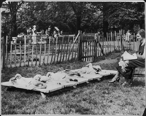 10x8 Print, SUNBATHING FOUNDLINGS. At the Foundling Hospital site in Guildford Street, London, is a sunbathing centre for tiny Londoners, where many babies enjoy sunbathing, supervised by a childminder. Chosen by Mary Evans. High quality RA4 prints. Printed on Kodak Endura and Edge papers..../ Photographic Prints of Sunbathing Foundlings from Mary Evans / Decor Fence